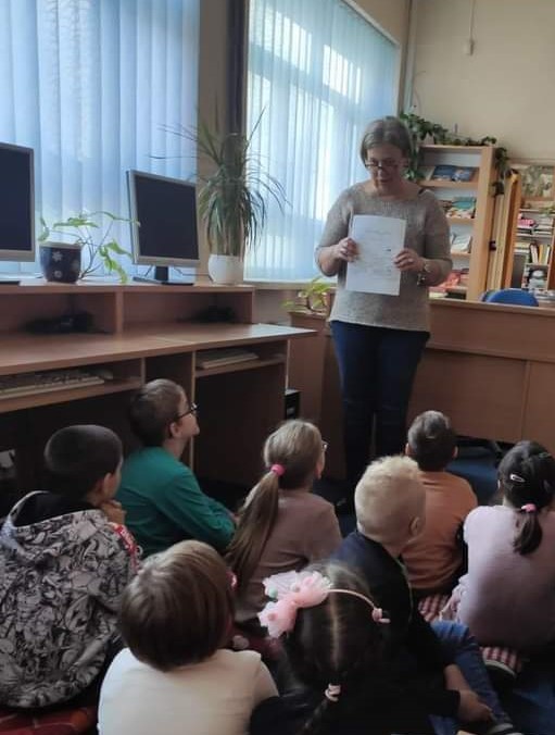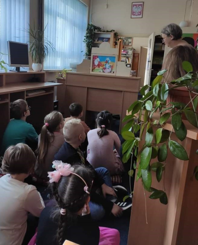Uczniowie zwiedzili bibliotekę, a także wysłuchali baśni Jana Ch. Andersena „Brzydkie kaczątko”. Ponadto zapoznali się z wierszem Jana Brzechwy pt. „Kaczka dziwaczka”. Na zakończenie dzieci utworzyły barwną galerię ilustracji do bajki o brzydkim kaczątku, malując przygotowane dla nich kolorowanki. Bardzo dziękujemy za miłą wizytę i zapraszamy na kolejne bajkowe spotkania