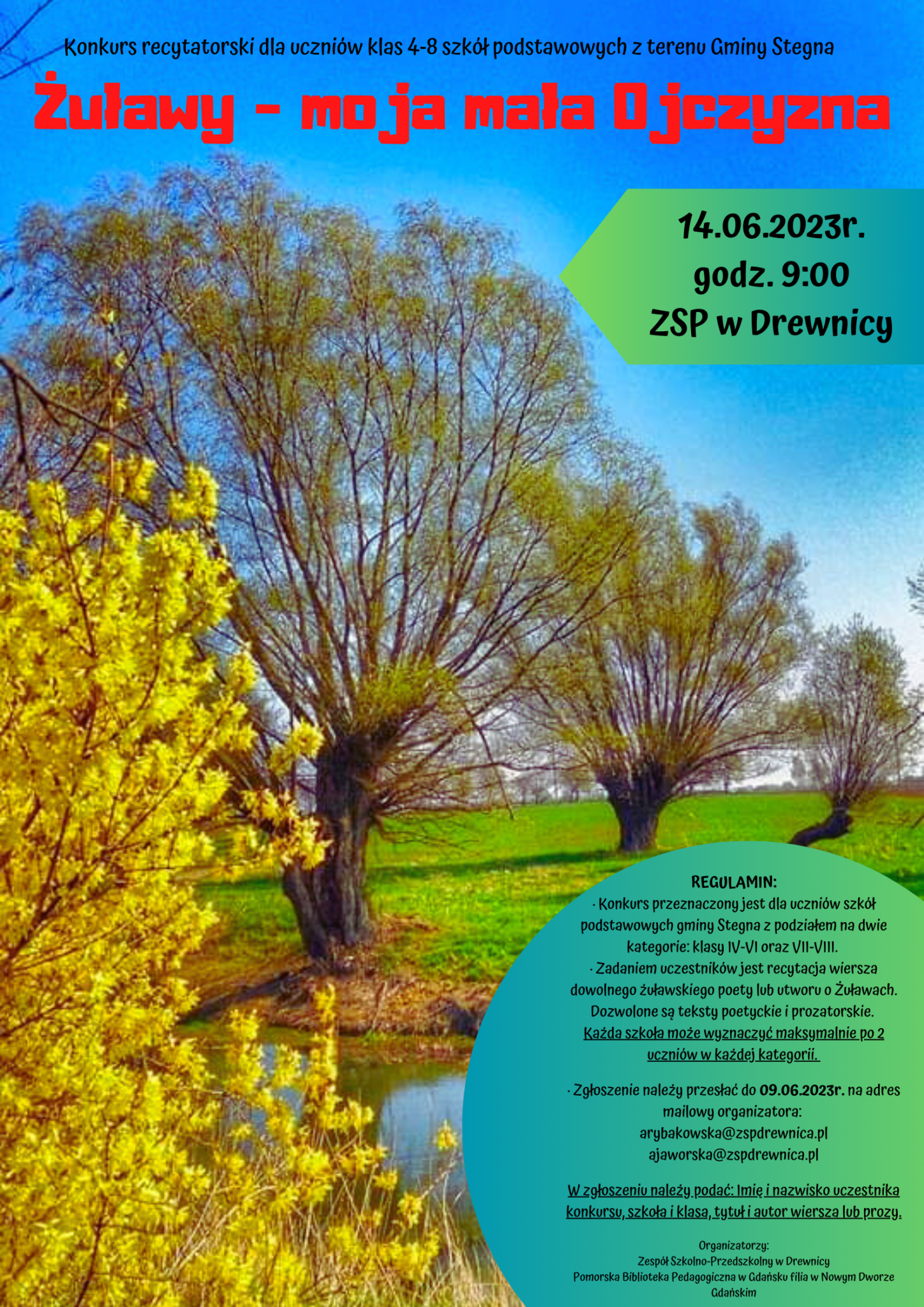 Zadaniem uczestników jest recytacja wiersza dowolnego żuławskiego poety lub utworu o Żuławach. Dozwolone są teksty poetyckie i prozatorskie.