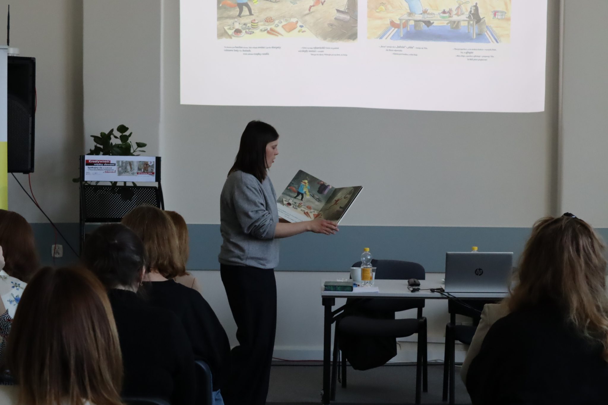Kolejnym ważnym punktem programu był wykład poświęcony książkom obrazkowym. Uczestniczki dowiedziały się, dlaczego warto po nie sięgać, a także jak wykorzystać je w pracy dydaktycznej. Dzięki temu mogły lepiej poznać potencjał tzw. picture booków.