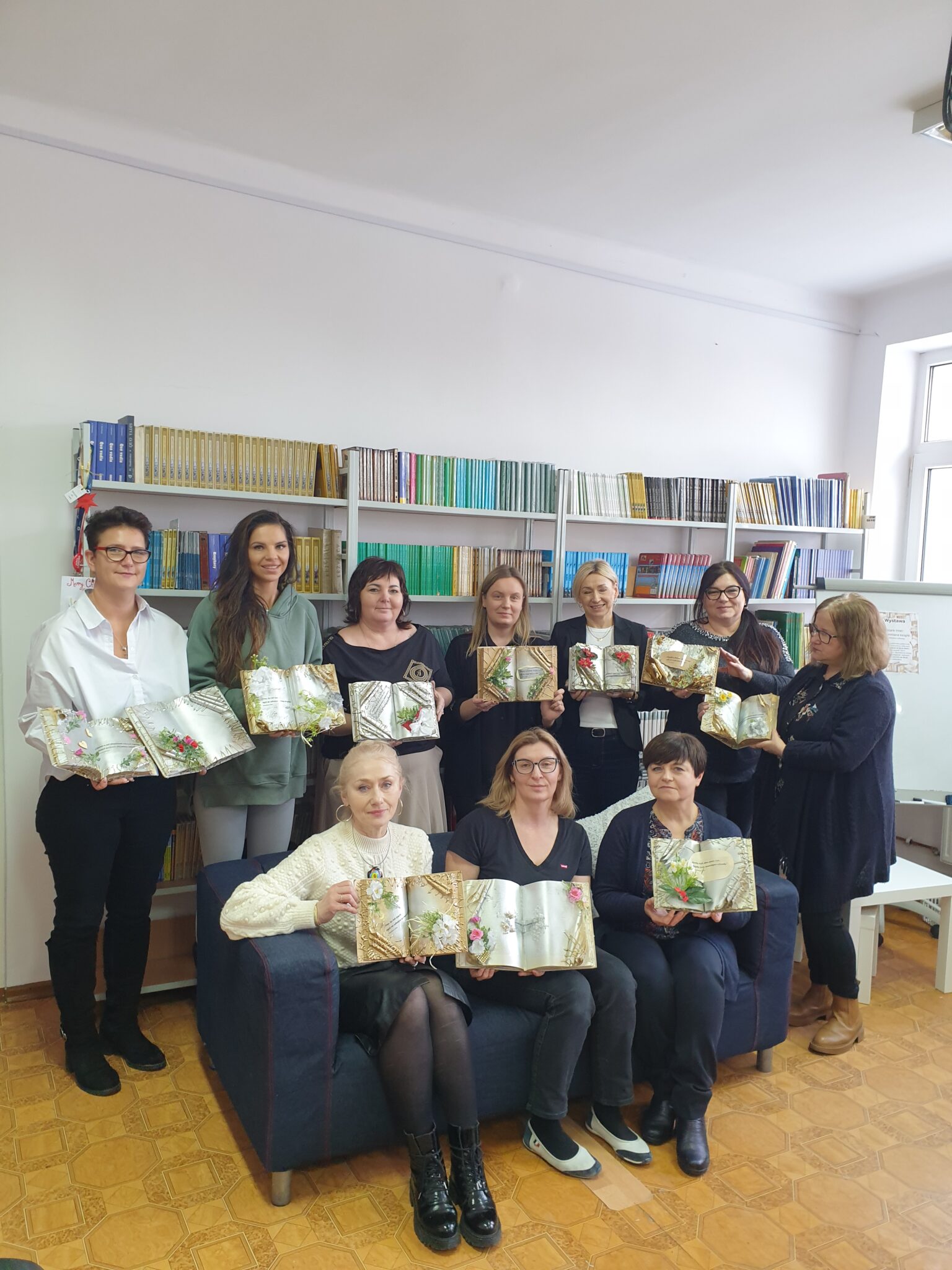 Tym razem centralny punkt wydarzenia stanowiły warsztaty pod hasłem „Książka artystyczna dla każdego”. Prowadziła je Agnieszka Predygier – kierownik Filii PBP w Malborku. Uczestniczki szkolenia z zaangażowaniem pracowały nad swoimi projektami i miały wiele pomysłów na wykorzystanie tego typu działań w pracy z uczniami. Bardzo dziękujemy za wykazany entuzjazm i miłą atmosferę spotkania!