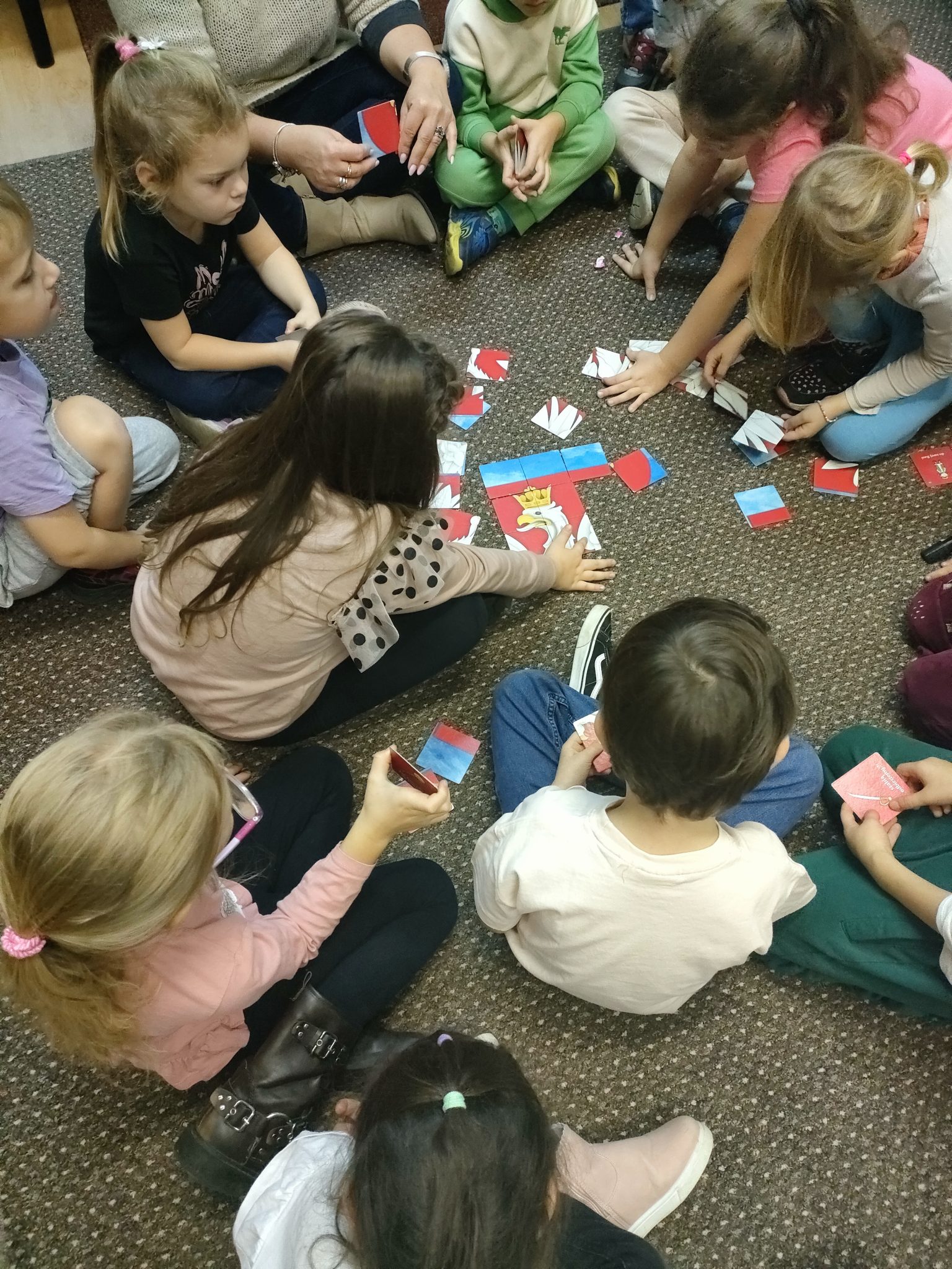 Podczas części warsztatowej uczestnicy tworzyli chorągiewki, układali godło Polski oraz przygotowywali własne portrety Misia Wojtka, dzięki czemu jeszcze lepiej zapamiętali bohatera zajęć i znaczenie symboli narodowych.
