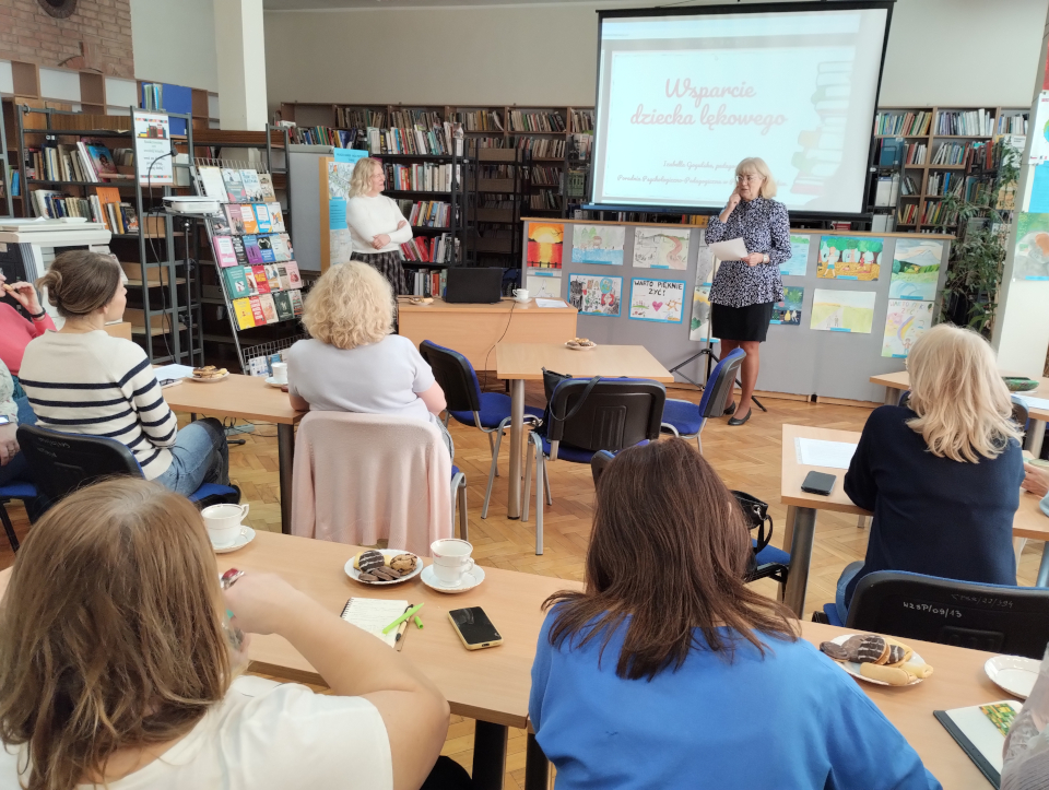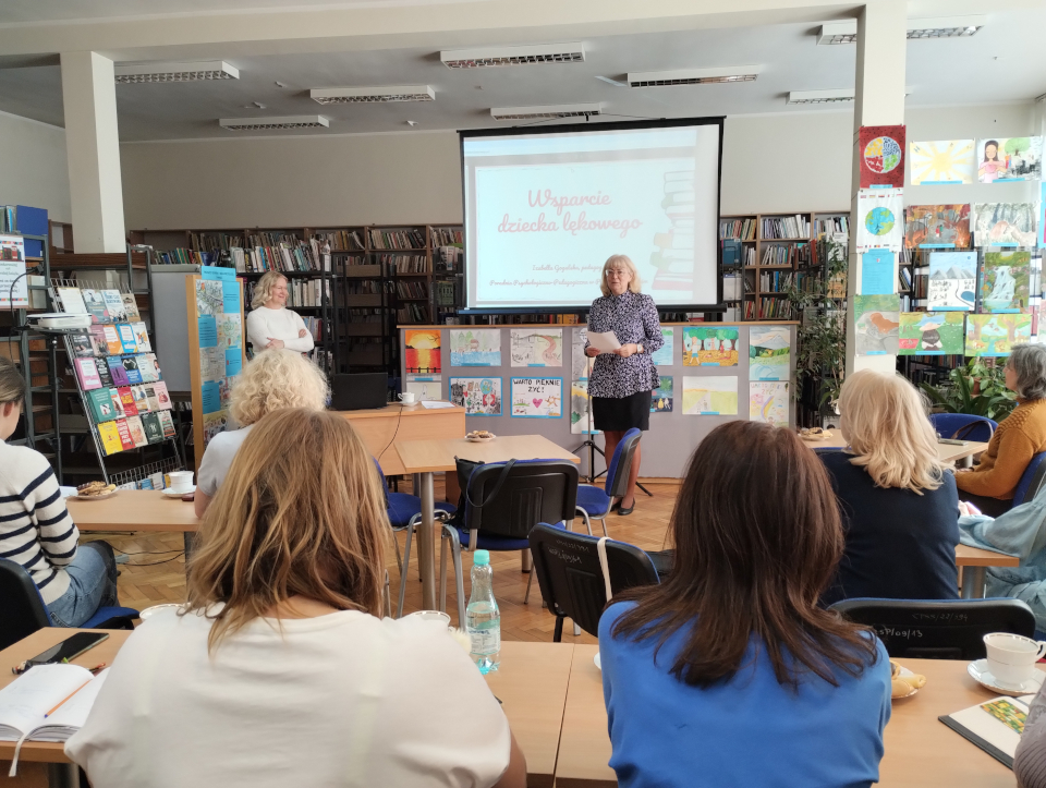 Dla nauczycieli bibliotekarzy uczestniczących w spotkaniach sieci przygotowała temat o wsparciu dziecka lękowego. Takie dzieci w szkole mogą zostać niezauważone. Bywają bardzo grzeczne, mogą bać się poprosić o pomoc. Biblioteka szkolna to miejsce, gdzie nie stawia się stopni, nie ocenia się. Nauczyciel bibliotekarz ze swoją uważnością, wrażliwością może takiemu dziecku zapewnić w niej bezpieczną przestrzeń. Może też pozytywnie wpływać na funkcjonowanie takiego dziecka w środowisku szkolnym. Ważne jest tu zachowanie higieny psychicznej pracy z uczniem przejawiającym zaburzenia lękowe.
