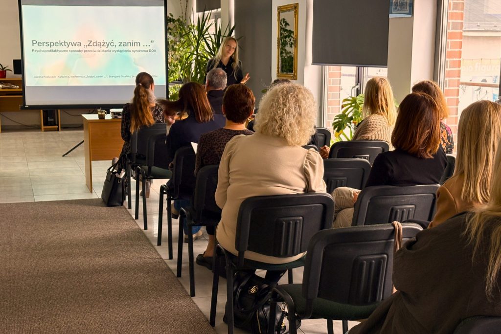 Wystąpienie Joanny Pastuszak-Cybulskiej (trenerki, edukatorki i koordynatorki programów mentoringowych) skupiało się na psychoprofilaktycznych sposobach przeciwdziałania rozwojowi syndromu DDA, ważności budowania odporności wewnętrznej dzieci z domów dotkniętych problemem alkoholowym, charakterystyce ról pełnionych przez nie w swoich rodzinach, a także przedstawieniu wybranych studiów przypadków DDA. Ważny element spotkania stanowiła promocja napisanej przez nią książki „Zdążyć zanim…”, którą można było nabyć podczas konferencji.