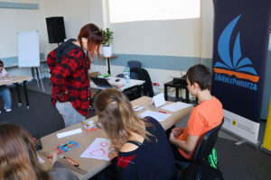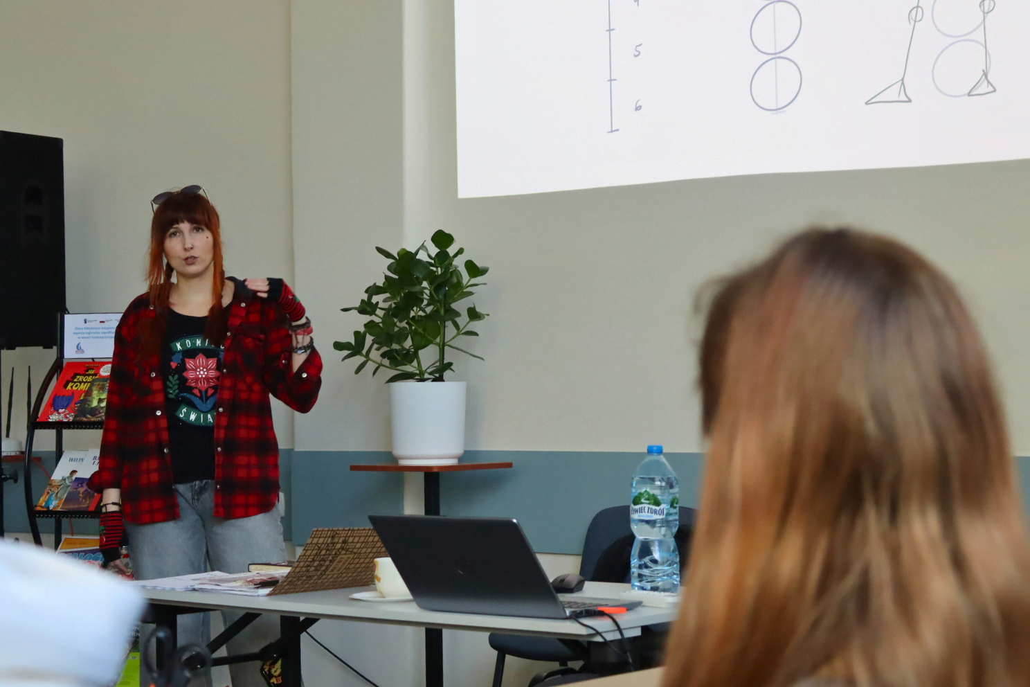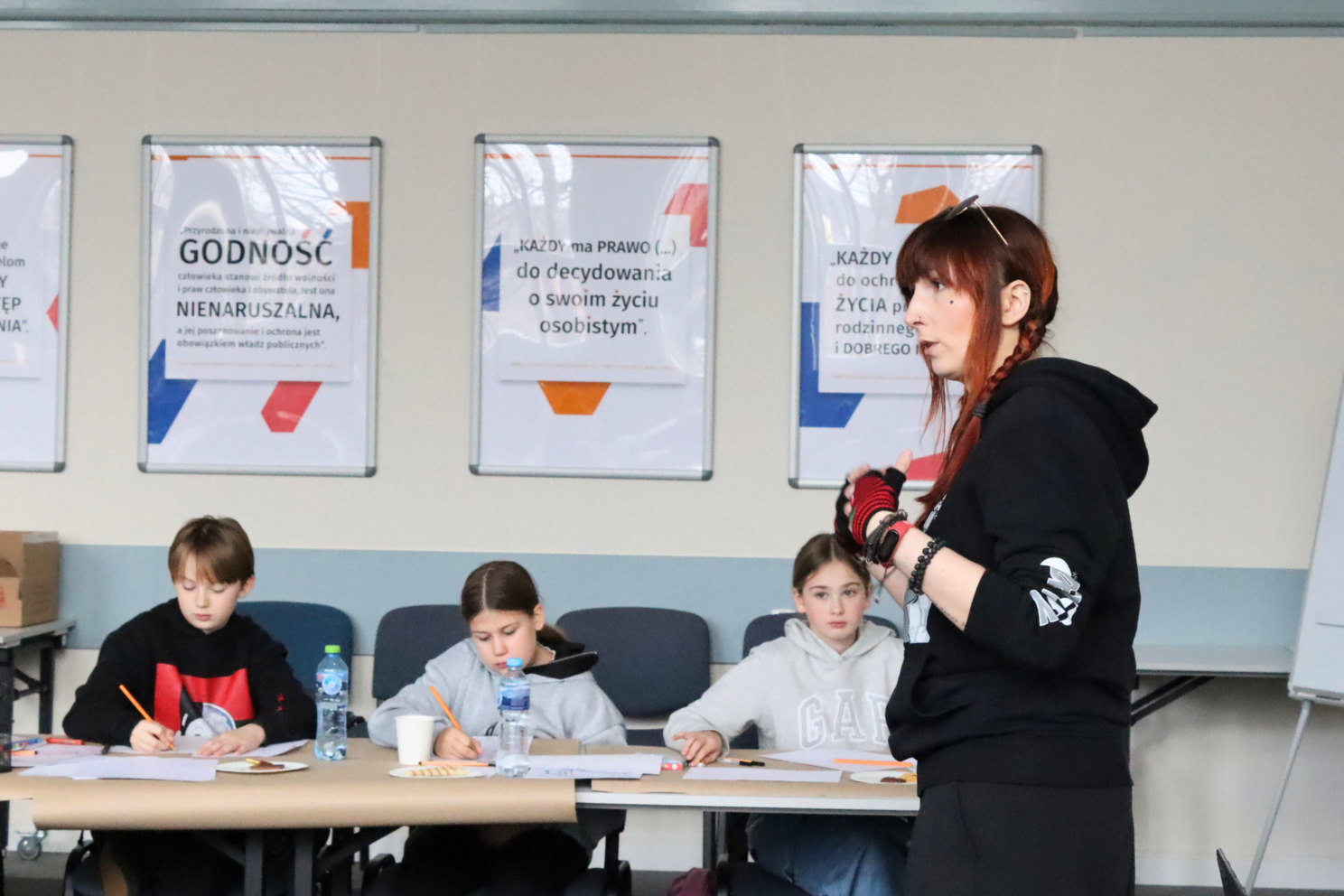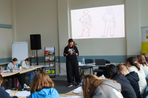 Tala dużo opowiadała o tym, w jaki sposób buduje się bohaterów komiksów i na co należy zwrócić uwagę przy tworzeniu postaci. Uczniowie przekonali się, że jest do tego potrzebny nie tylko wyćwiczony nadgarstek, ale również kreatywność i otwarta głowa. Bo jak sama prowadząca stwierdziła – każdy może rysować komiksy.