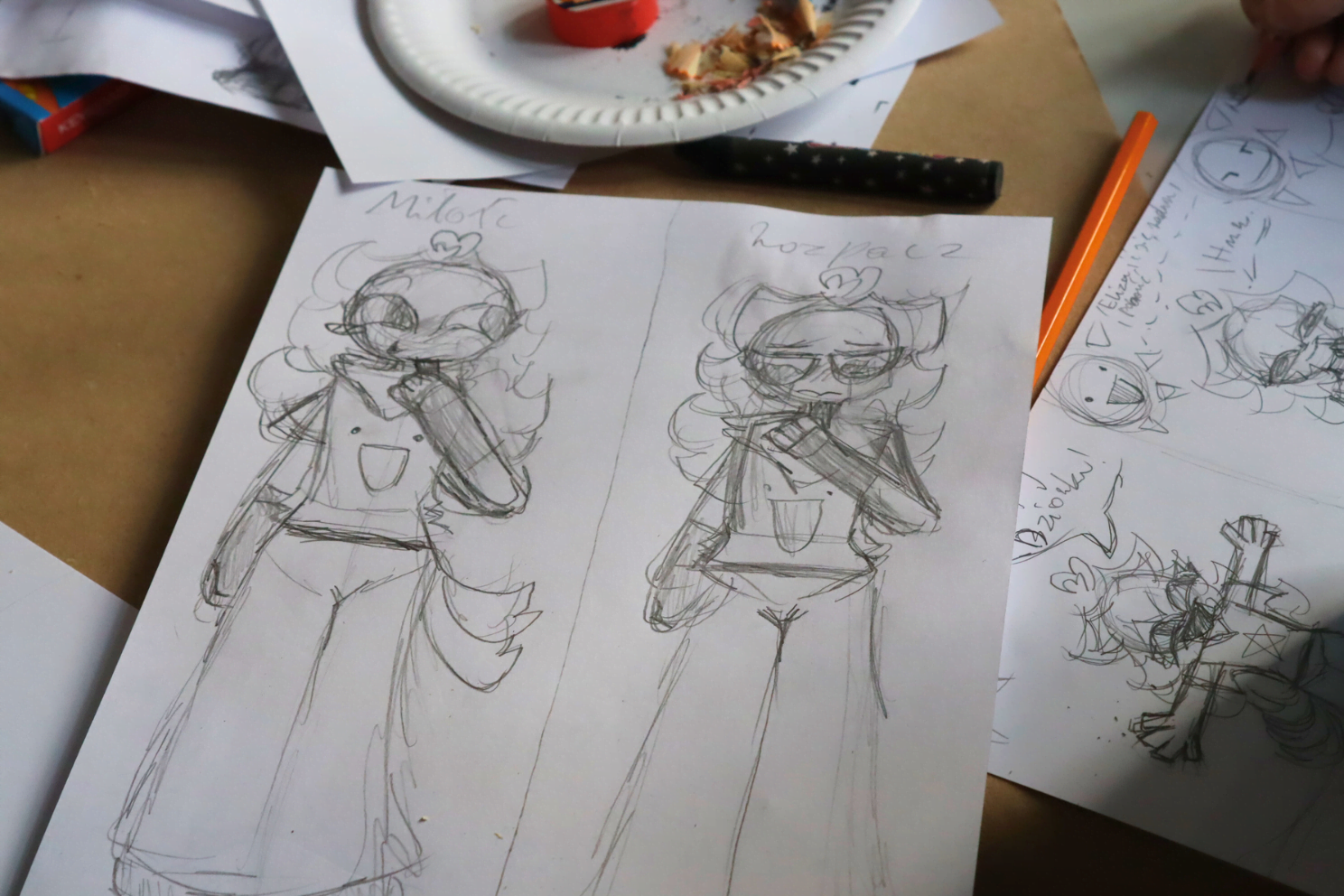 Po dopracowaniu postaci przyszedł najwyższy czas na stworzenie komiksowej historii. Ostatnim zadaniem na warsztatach było stworzenie własnego komiksu składającego się z kompletnej planszy, która nie tylko zawiera rysunki, ale przede wszystkim opowiada historię.