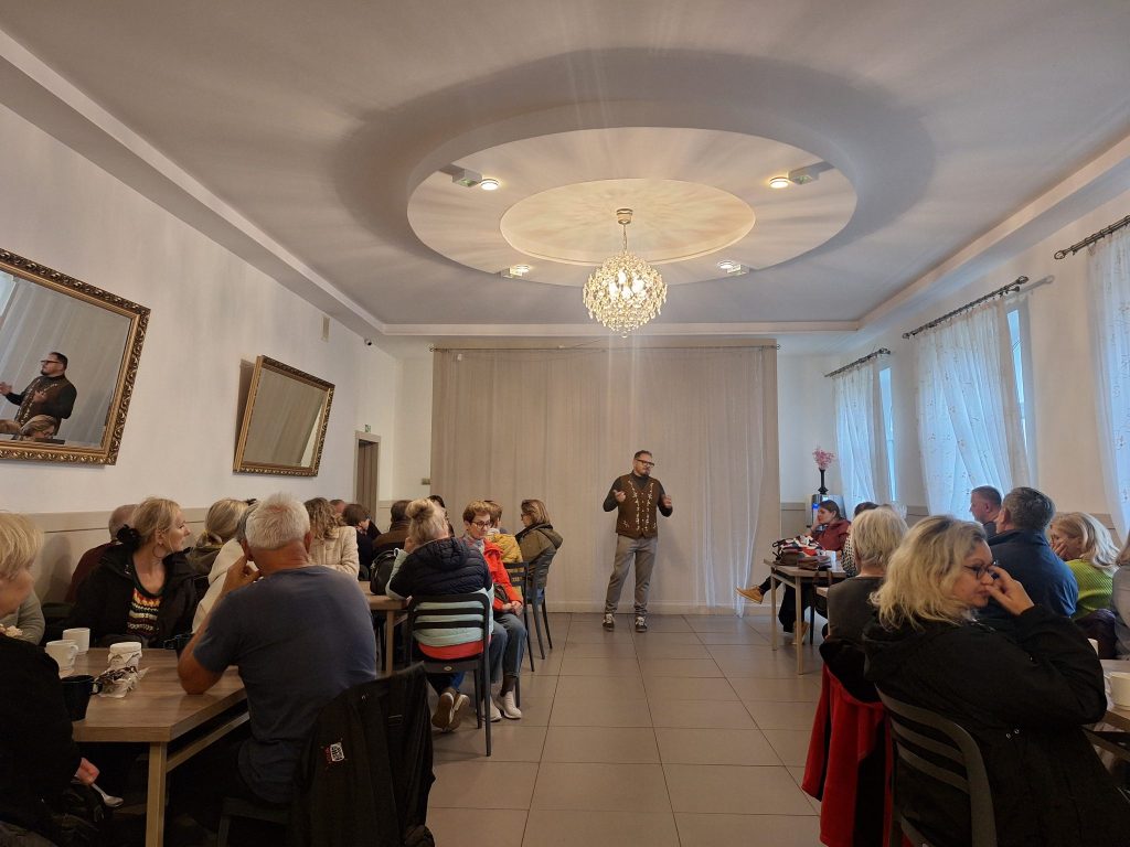 Tradycyjnie wycieczka odbyła się pod kierownictwem naszego przewodnika Radka Kamińskiego, wybitnego znawcy tematu. Tym razem do stałych uczestników pleneru dołączyli nowi, zachęceni opowieściami z poprzednich bibliotecznych eskapad. Wrażeń było co niemiara. Trafiliśmy bowiem do siedlisk i miejsc zupełnie nam nieznanych, mimo, że tak nieodległych. Nasze myśli i wyobrażenia podążyły ku dawnym mieszkańcom i ich życiu, które albo naturalnie minęło, albo miało niespodziewane zakończenie.