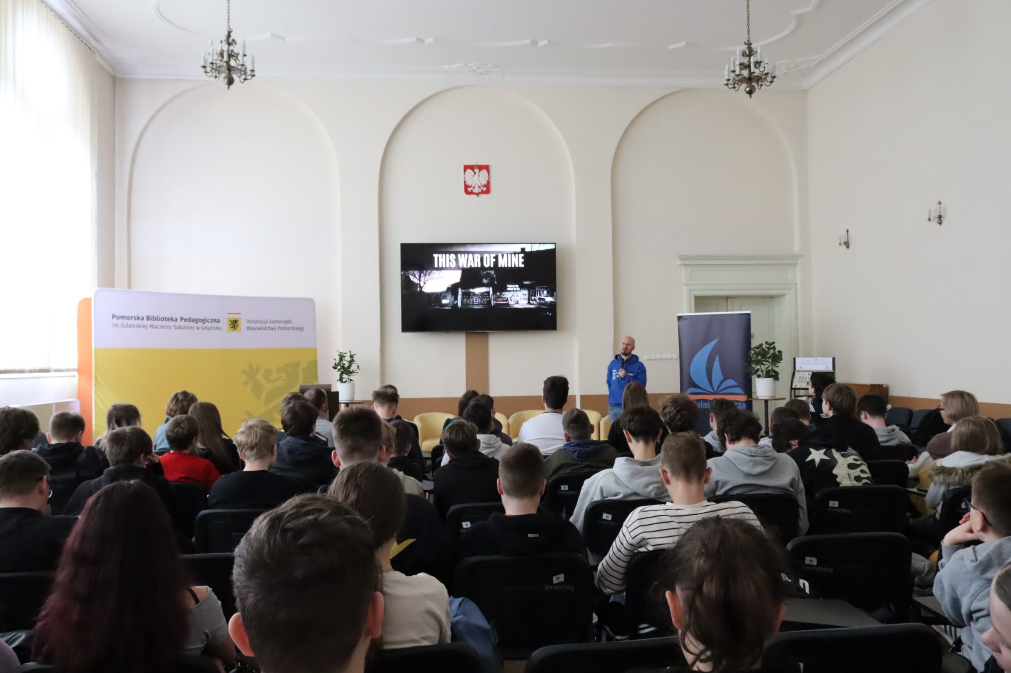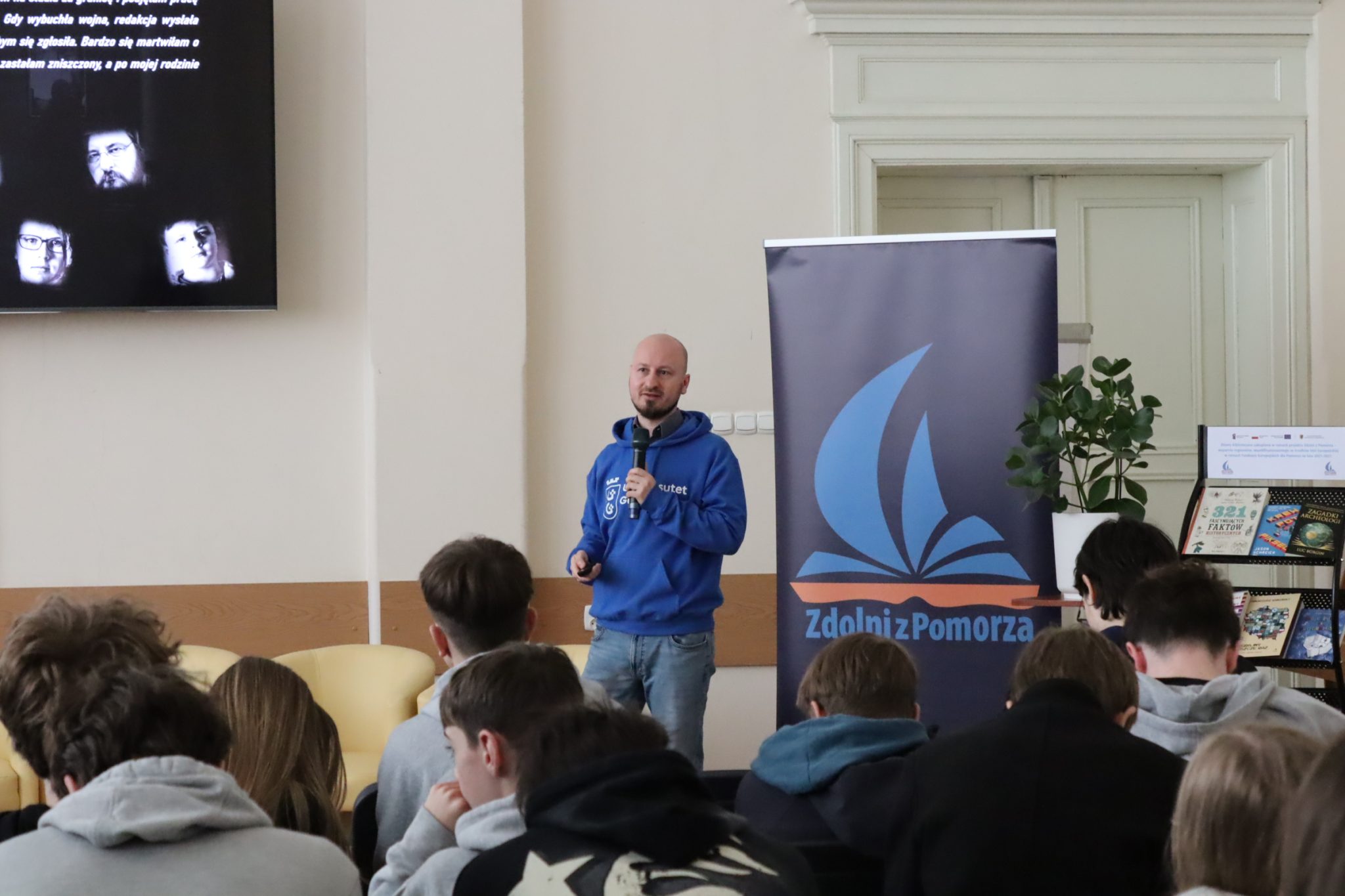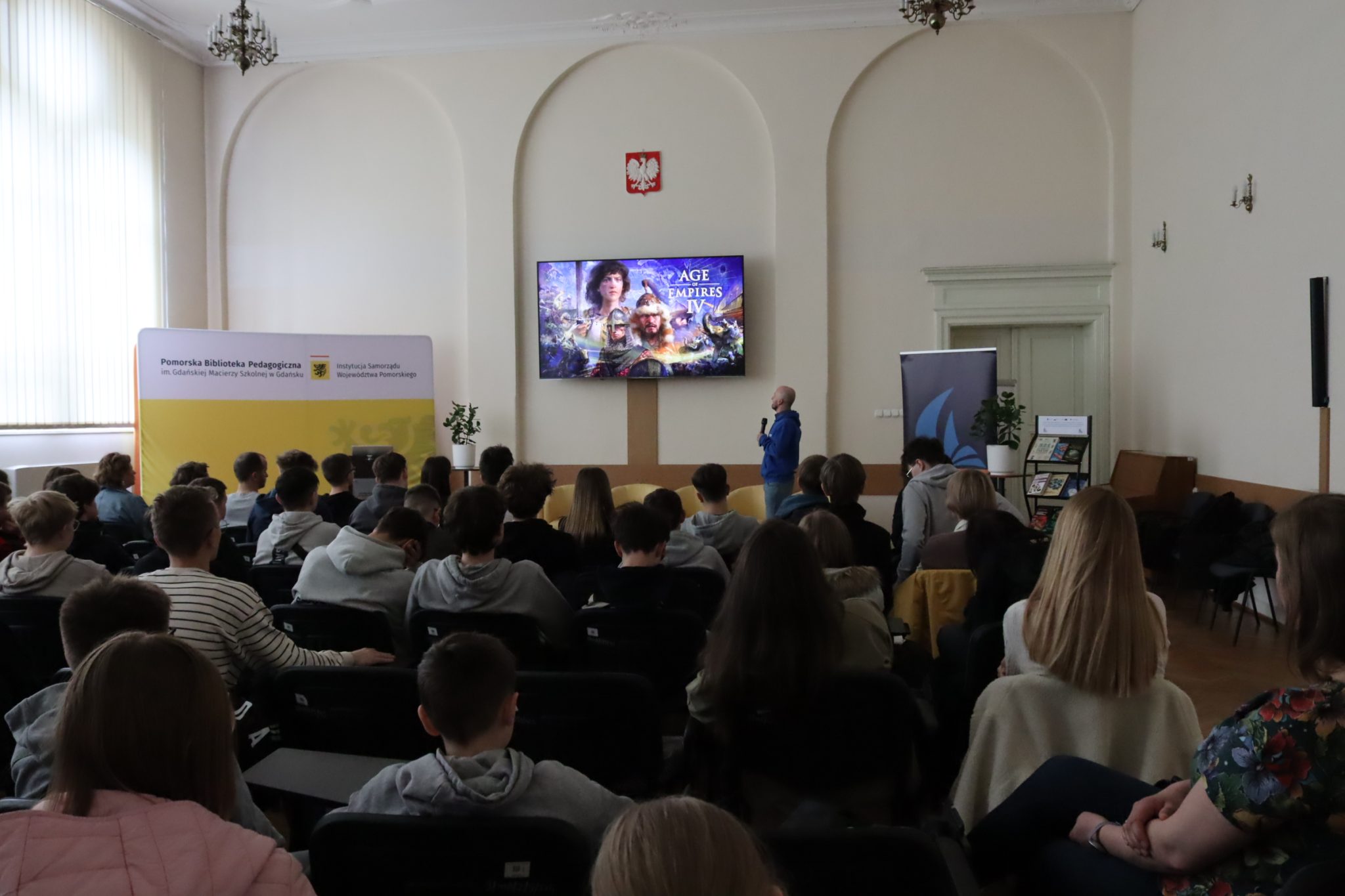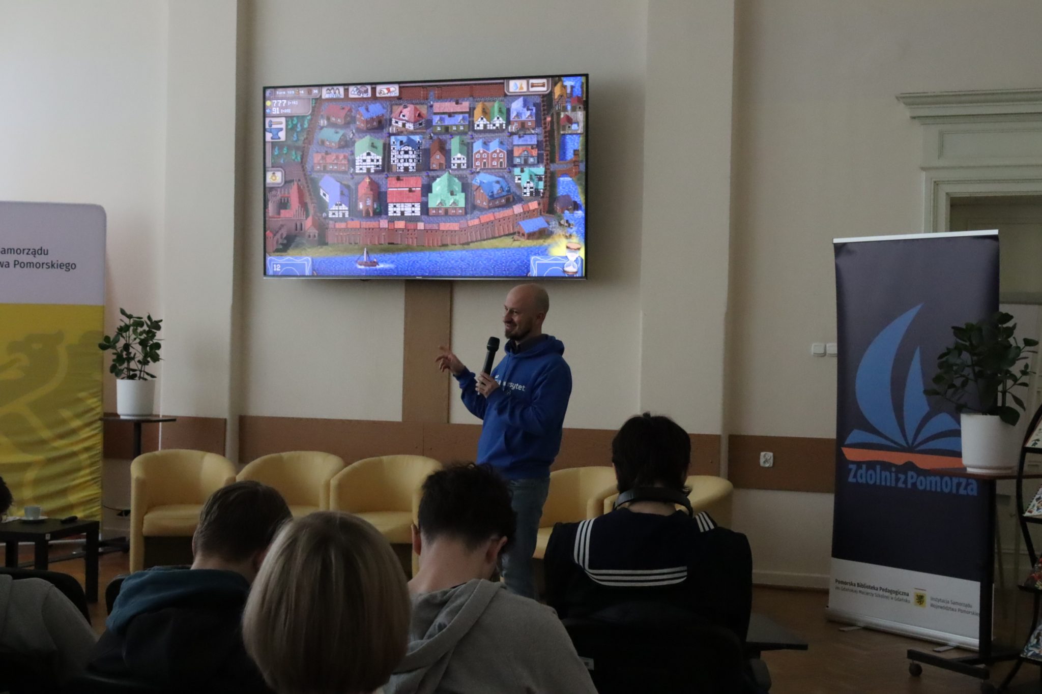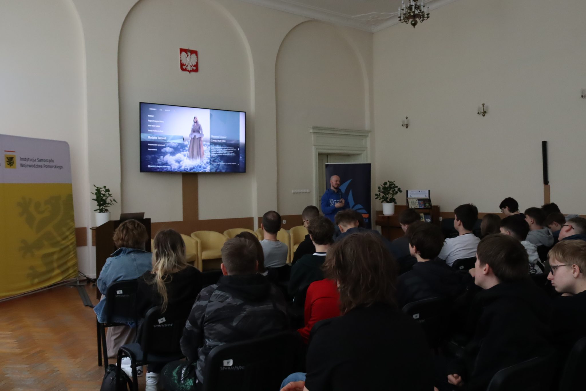 Spotkanie z dr. Wacławem Kulczykowskim już za nami. Uczestniczyli w nim uczniowie z pomorskich szkół w ramach projektu „Zdolni z Pomorza – wsparcie regionalne”. Dowiedzieli się jak historyczne gry komputerowe mogą wspierać naukę historii i rozwijać pasję do badań naukowych.