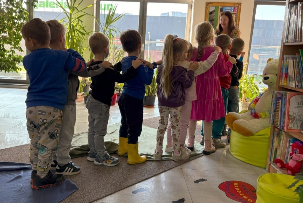 Niektóre goszczące w bibliotece grupy, dzieliły się z nami tym, co sprawia im radość. Początkowo większość dzieci wymieniała te same przyjemności, ale stopniowo otwierały się i ośmielały, by mieć własne zdanie.