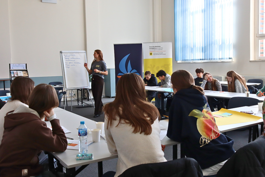 26 i 27 lutego 2026 w naszej bibliotece odbył się „Praktyczny warsztat asertywności” dla uczniów z Pomorza. Poprowadziła go psycholog Iza Morawska. Wydarzenie odbyło się w ramach projektu „Zdolni z Pomorza – wsparcie regionalne”.