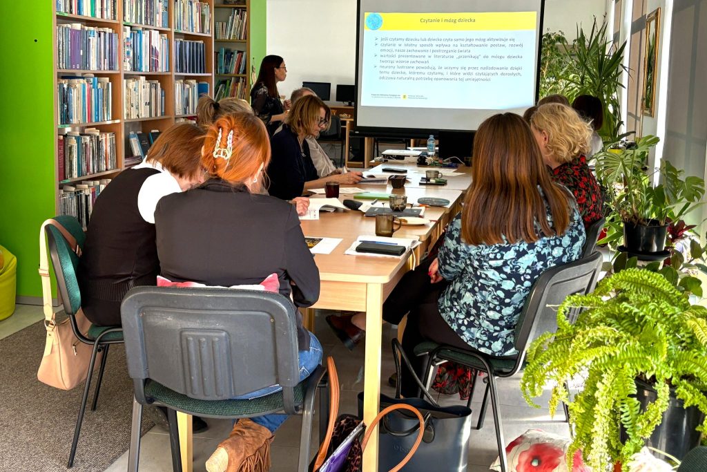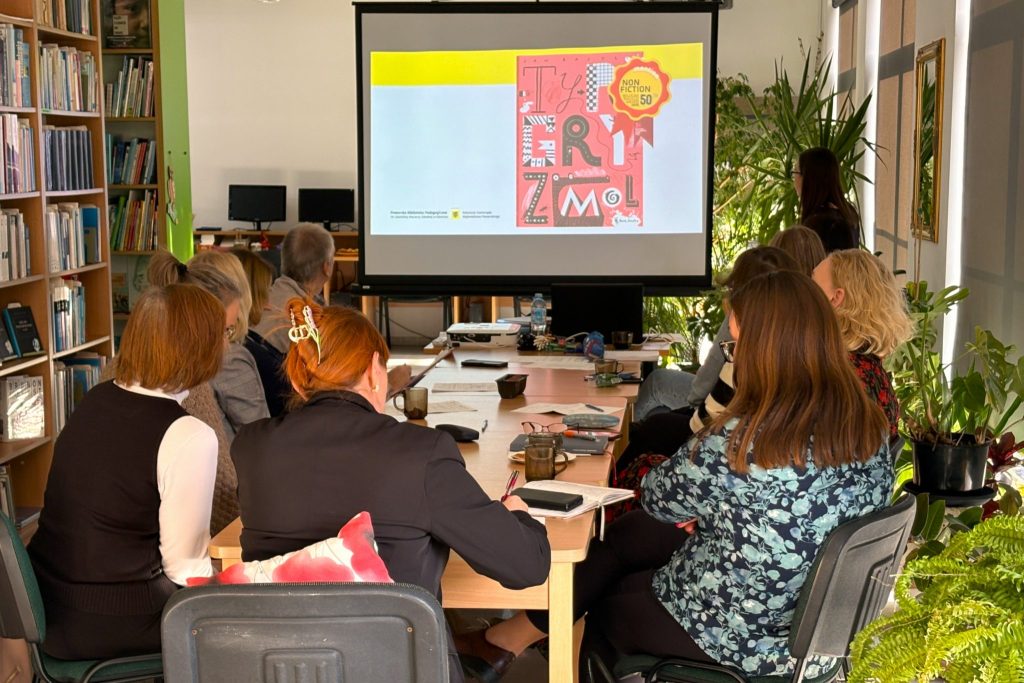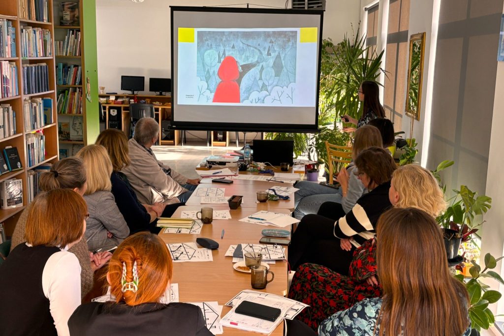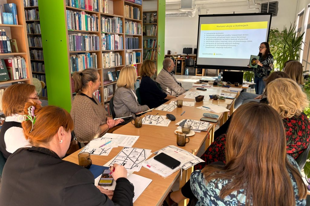 13 listopada 2025 roku odbyły się w naszej Filii warsztaty czytelnicze dla nauczycieli „Wartości ukryte w książkach – magia słów i ilustracji” w ramach Akademii Ambasadorów Czytelnictwa. Spotkanie poprowadziła Dominika Ringwelska, nauczyciel-konsultant edukacji polonistycznej i kulturalno-artystycznej w Pomorskim Centrum Edukacji Nauczycieli w Gdańsku, która podczas warsztatów wykorzystuje metody i techniki, pozwalające wyjść poza schematy w odczytywaniu tekstów kultury.
