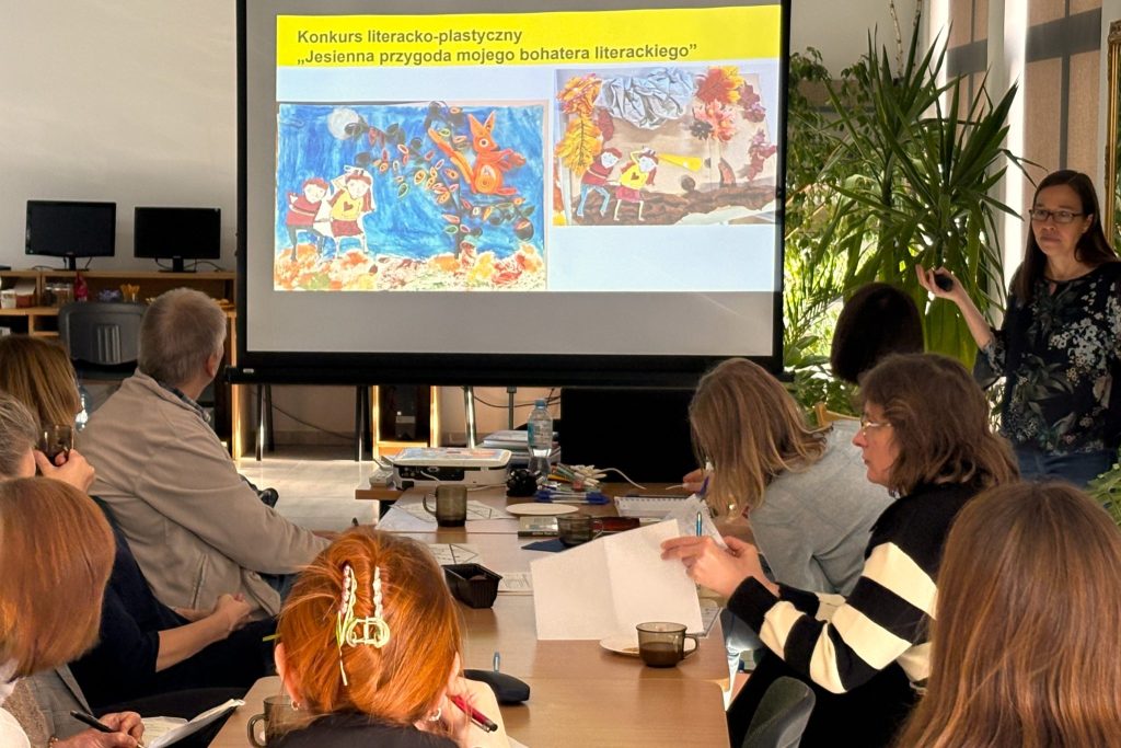 Prowadząca spotkanie skupiła się też na znaczeniu piękna artystycznych ilustracji w pobudzaniu wyobraźni dziecka, doskonaleniu umiejętności analizy i interpretacji obrazu oraz odczytywania wizualizacji treści utworu literackiego, a także kształtowaniu gustu i poczucia estetyki młodego czytelnika. Czemu mogą służyć także zróżnicowane formy książki. Wskazywała na ważność synergii działań, skierowanych do uczniów.