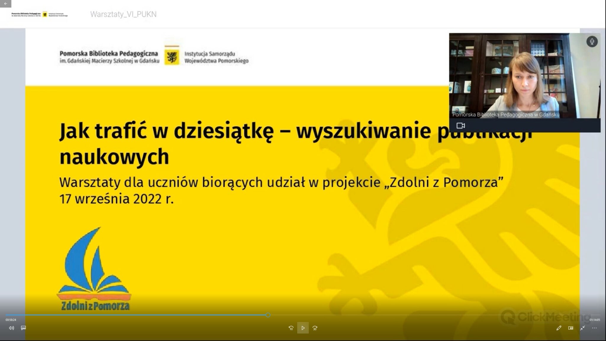 W sobotę 17 września 2022 r. odbyły się warsztaty dla uczniów w formie zdalnej na platformie ClickMeeting.