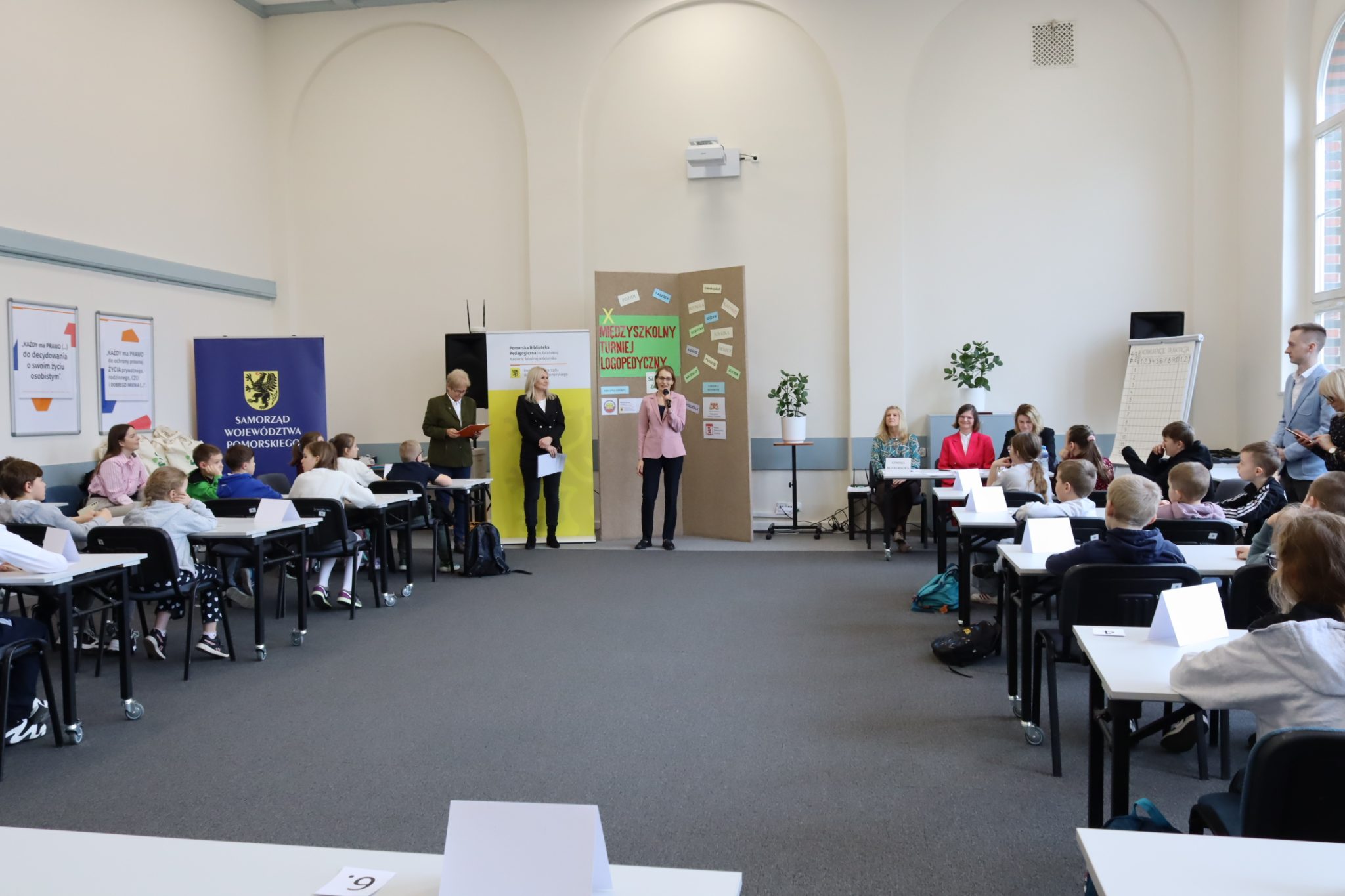14 kwietnia 2026 roku w naszej bibliotece odbył się X Międzyszkolny Turniej Logopedyczny „Szumiące zabawy”. Była to wyjątkowa, bo jubileuszowa edycja. Do rywalizacji w logopedycznych konkurencjach przystąpiło 12 drużyn z województwa pomorskiego. Współorganizatorem konkursu jest Szkoła Podstawowa nr 49 w Gdańsku.