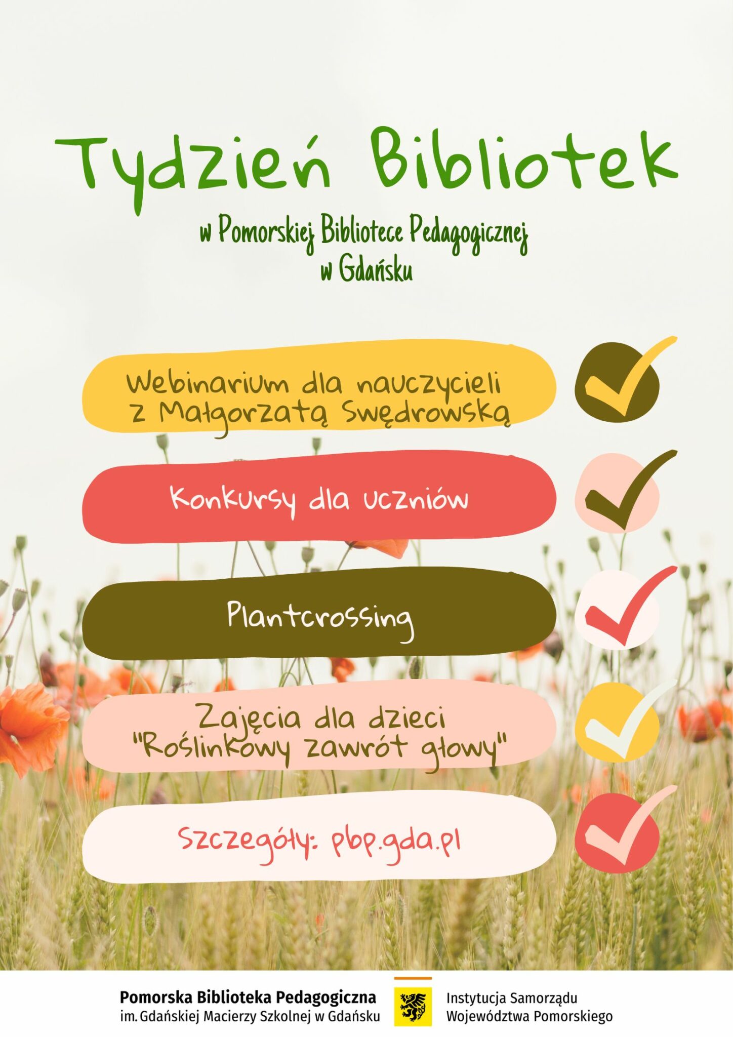 Pomorska Biblioteka Pedagogiczna w Gdańsku włącza się w obchody kolejnej edycji Tygodnia Bibliotek, proponując bogaty program skierowany zarówno do nauczycieli i uczniów z województwa pomorskiego jak i do wszystkich sympatyków PBP. W tym roku świętujemy pod hasłem „Moja, Twoja, Nasza – BIBLIOTEKA”! W programie: