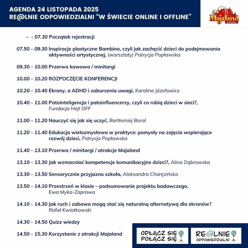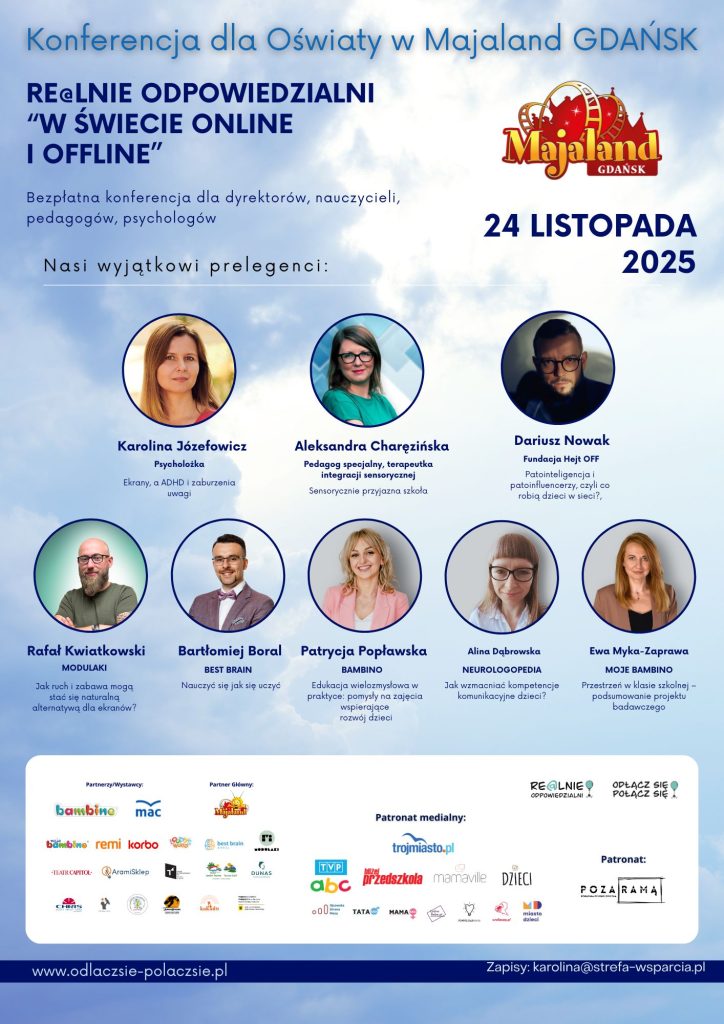 Konferencja odbędzie się 24 listopada 2025 roku (poniedziałek) w parku rozrywki Majaland Gdańsk (dzielnica Osowa, ul. Meteorytowa 12) w godz. 10.00-15.30 (warsztaty dla chętnych od 7.50). Oprócz ciekawych wykładów specjalistów odbędą się również warsztaty i mini targi, podczas których znajdziecie stoisko naszej biblioteki. Będzie także możliwość skorzystania z atrakcji Majalandu. Wydarzenie jest nie tylko doskonałą okazją do poszerzenia wiedzy, ale również do nawiązania nowych kontaktów, rozmów i wymiany doświadczeń.
