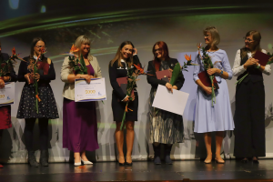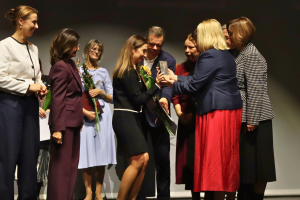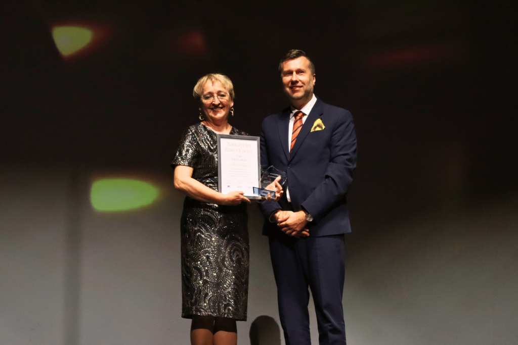 Nagrody laureatom i wyróżnionym wręczyła Wicemarszałkini Agnieszka Baranowska wraz z pozostałymi przedstawicielami samorządu i gośćmi zaproszonymi na scenę.