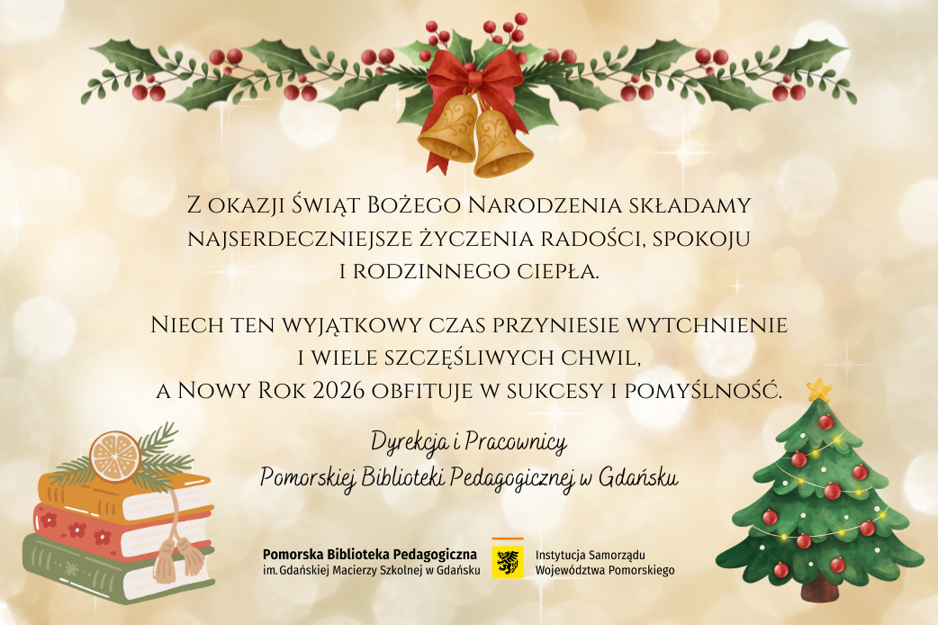 Z całego serca dziękujemy Czytelnikom, nauczycielom, bibliotekarzom, studentom, uczniom oraz wszystkim osobom i instytucjom korzystającym z oferty Pomorskiej Biblioteki Pedagogicznej w Gdańsku — za zaufanie, obecność i aktywne uczestnictwo w naszych działaniach przez cały rok.