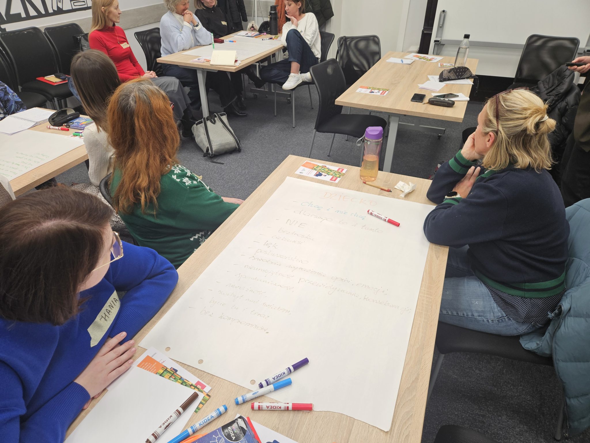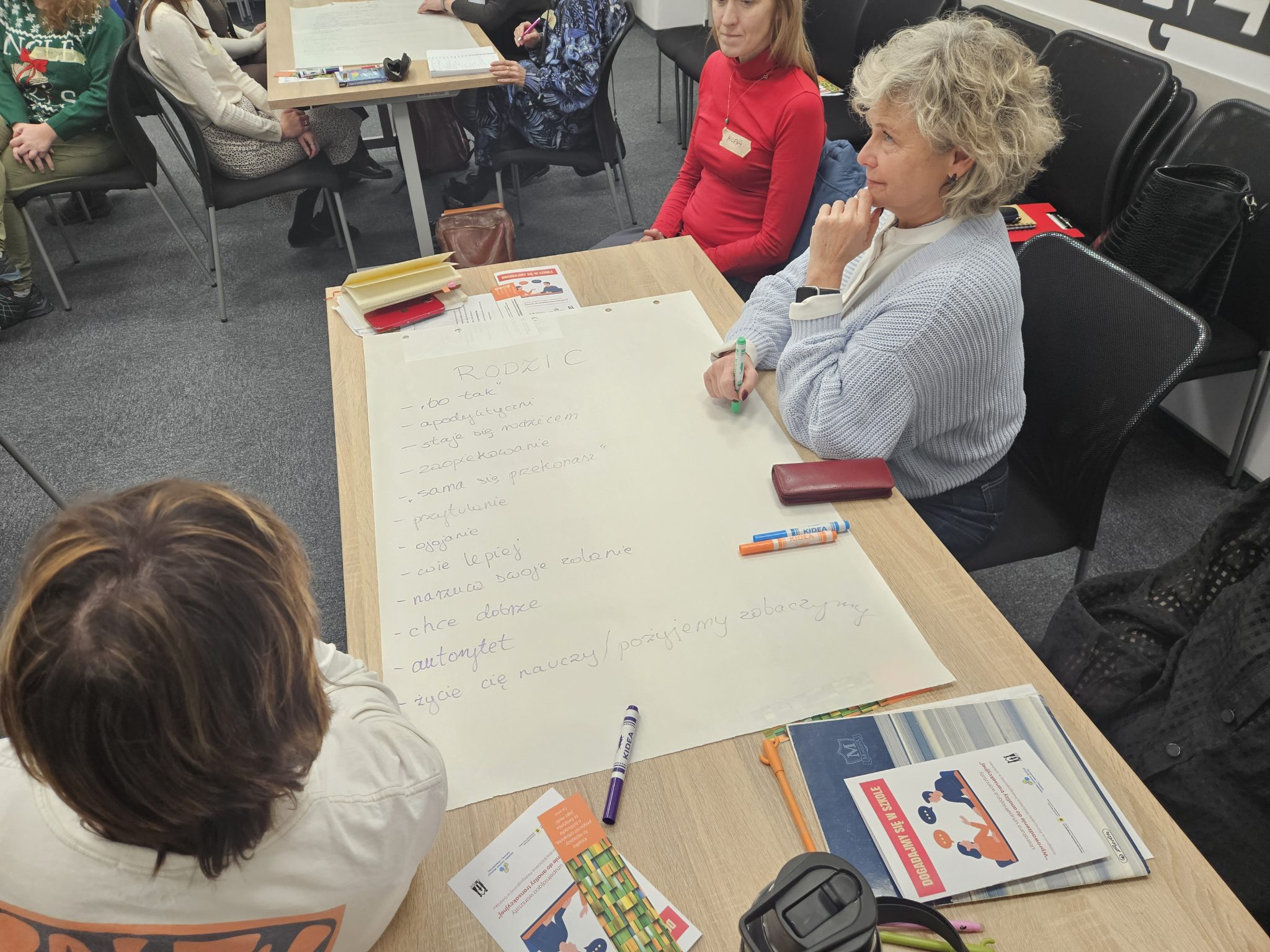 Pierwszy warsztat był wprowadzeniem do analizy transakcyjnej jako narzędzia rozumienia komunikacji. Uczestnicy poznali trzy pozycje, z których prowadzimy rozmowy – Rodzica, Dorosłego i Dziecka – oraz dowiedzieli się, jak wpływają one na relacje i przebieg rozmów w szkole. Uczyli się rozpoznawać, z jakiej pozycji prowadzą rozmowy na co dzień i jak świadomy wybór sposobu komunikacji może sprzyjać porozumieniu zamiast napięciom. To doświadczenie stanowi punkt wyjścia do kolejnego spotkania, poświęconego przekazywaniu informacji zwrotnej i wyrażaniu oczekiwań w sposób wspierający dialog.